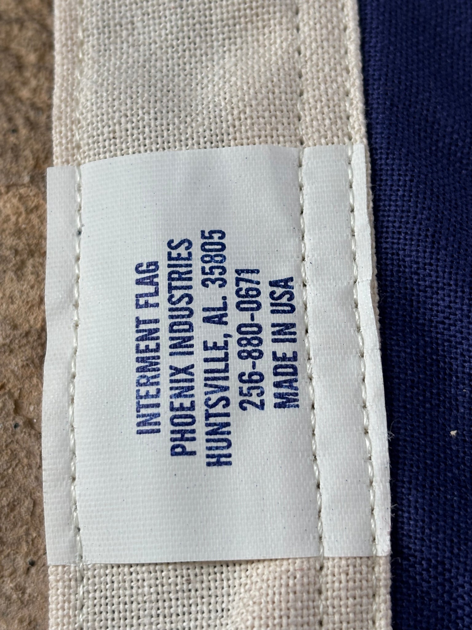 Ce drapeau, aux étoiles brodées, date des années 1990’s et a été fabriqué dans l’Alabama, à Huntsville.