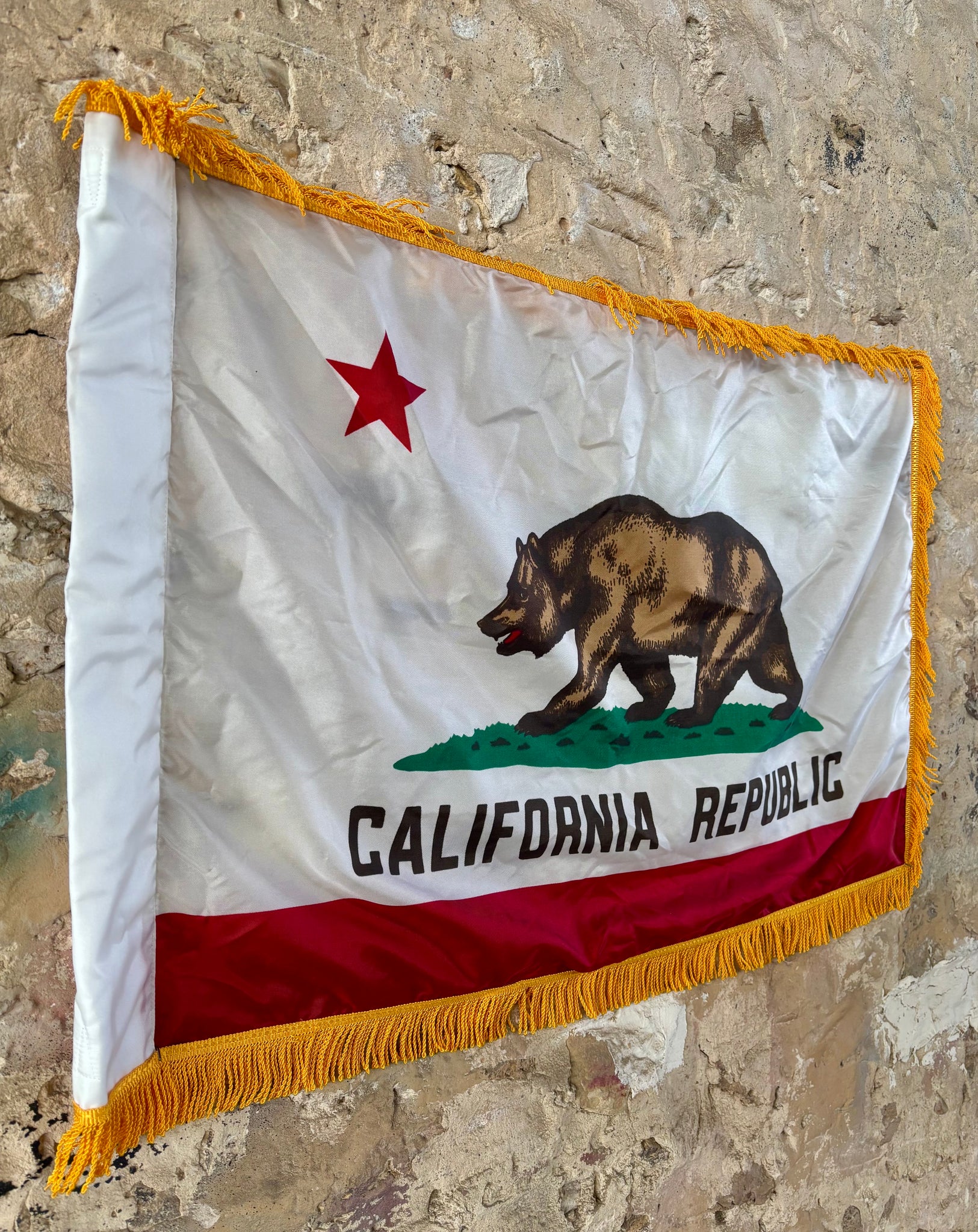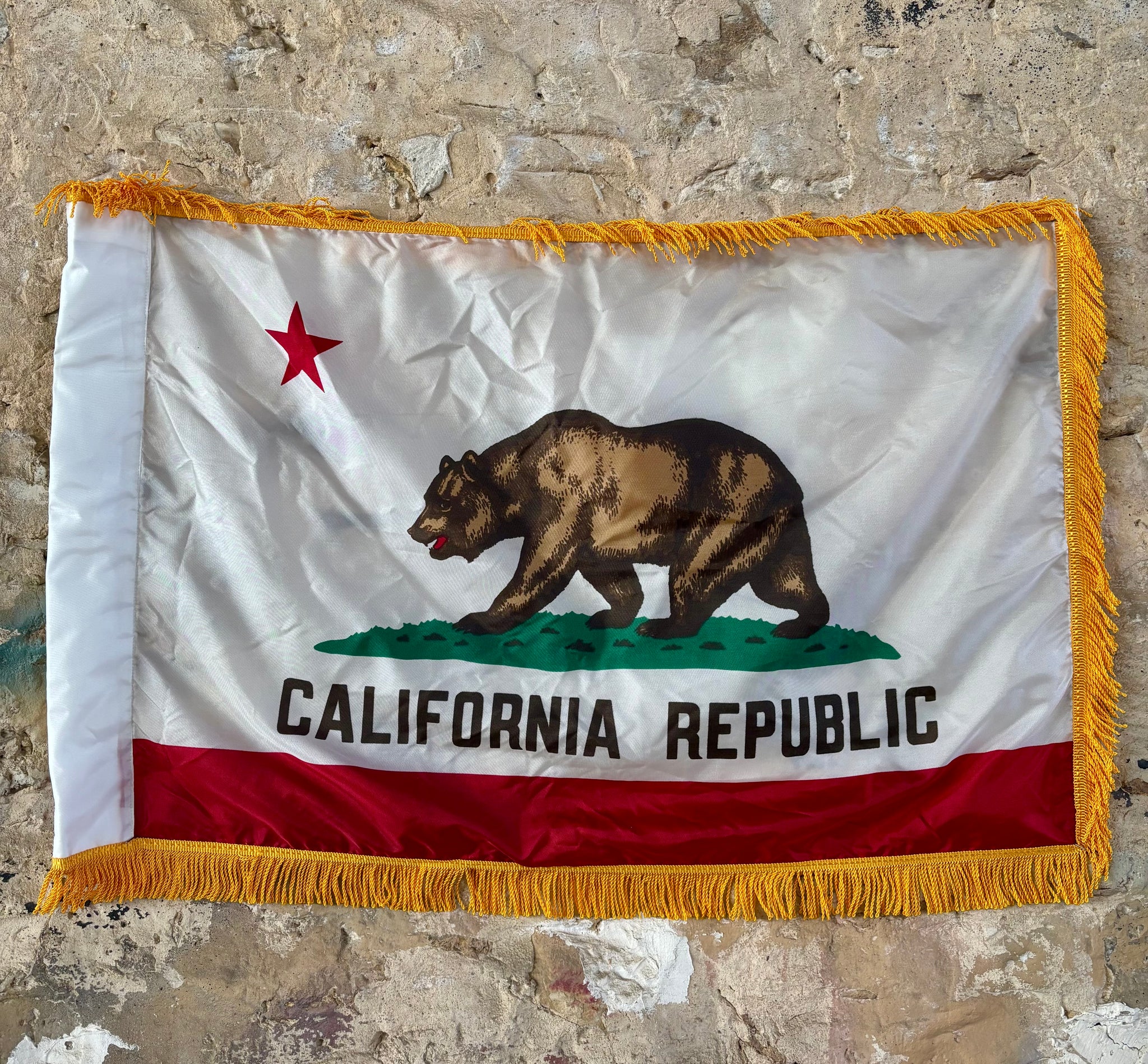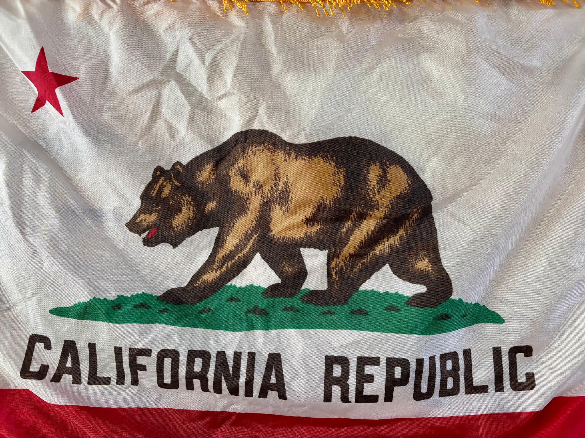 Véritable drapeau de l’État de la Californie - Avec sa frange dorée - MADE IN USA