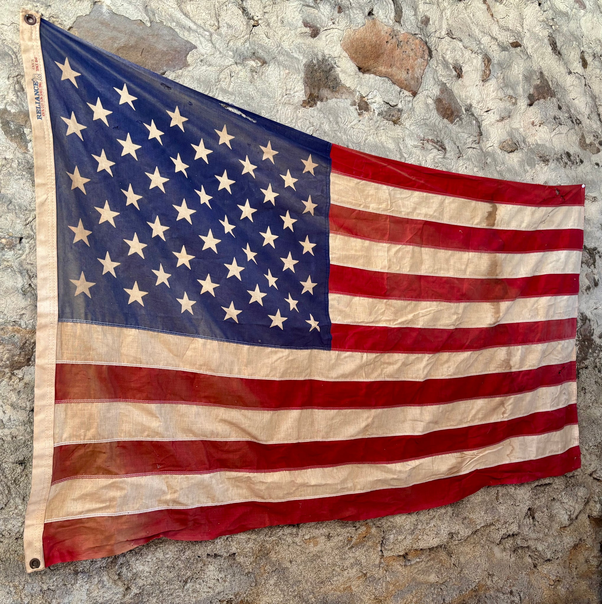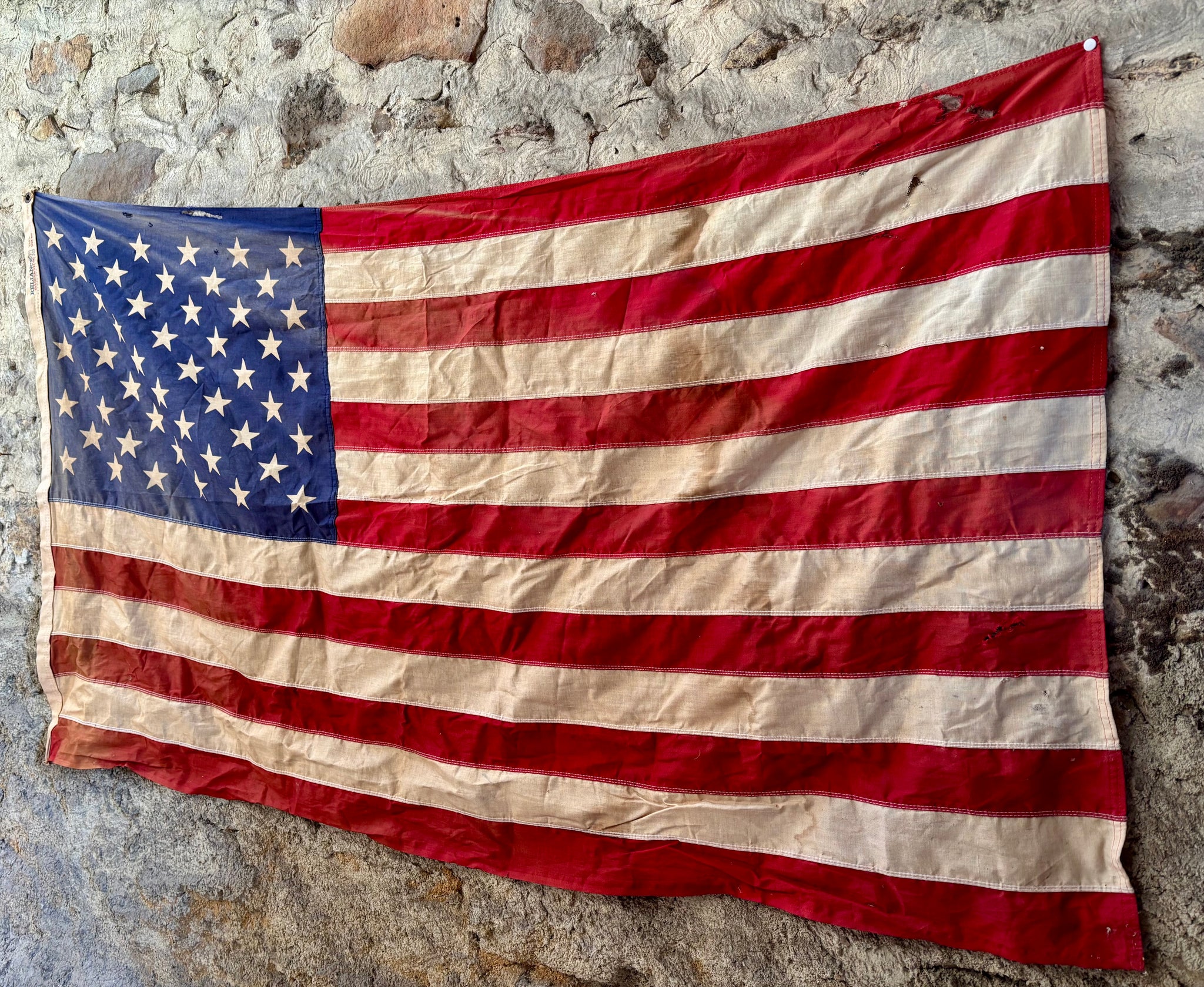 Véritable drapeau Américain de l’Ouest Américain avec beaucoup de patine - 1960’s Provenance Arizona - 146x88cm - MADE IN USA