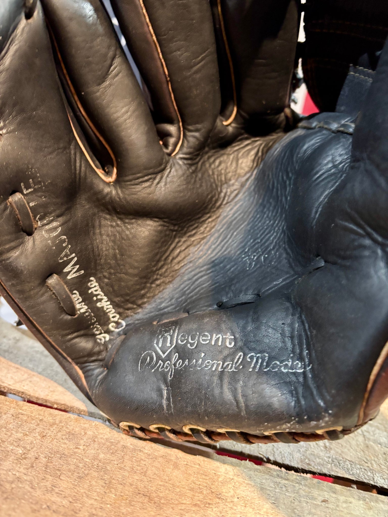Ce gant a donc servi aux USA sur des terrains de baseball et a donc des traces de vie lui donnant beaucoup de charme.