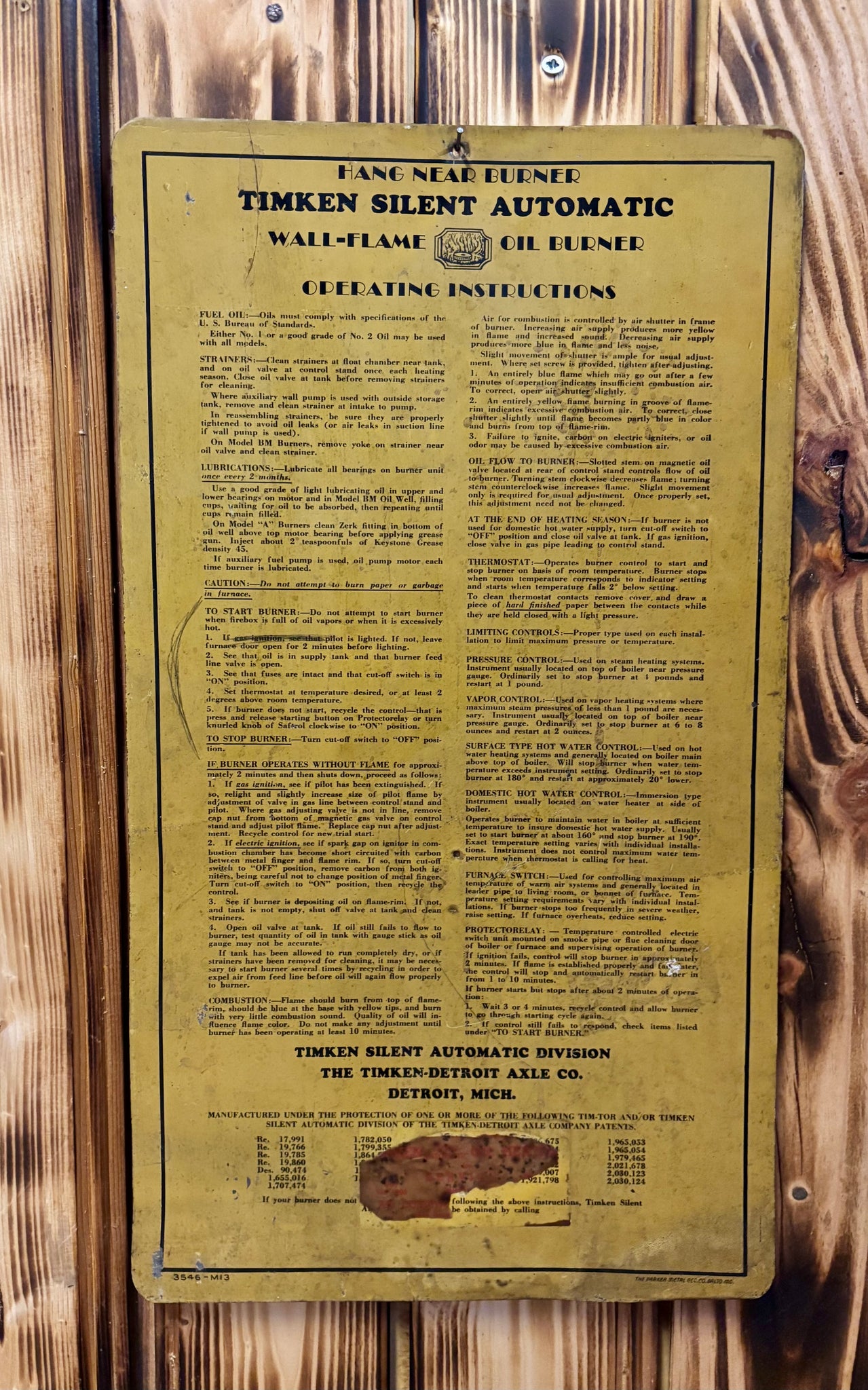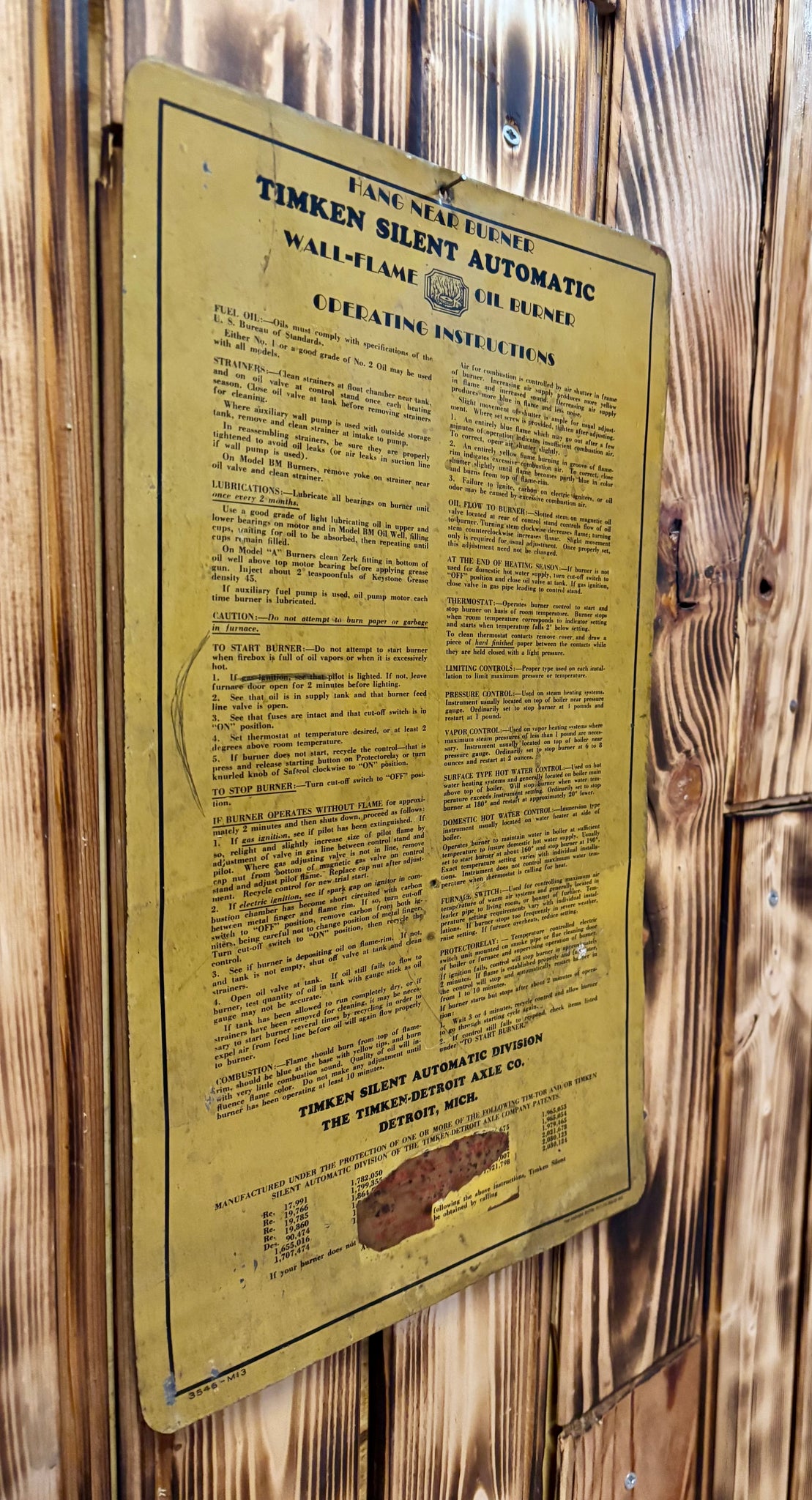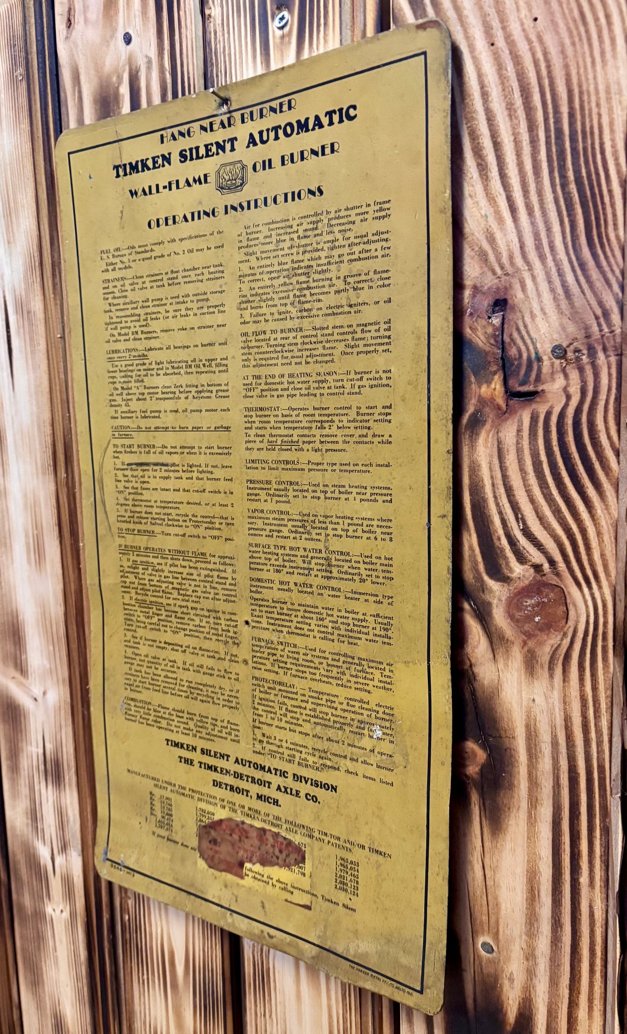 Véritable panneau en métal - Timken Silent Oil Burner - Époque début 1950’s - Provenance Nebraska