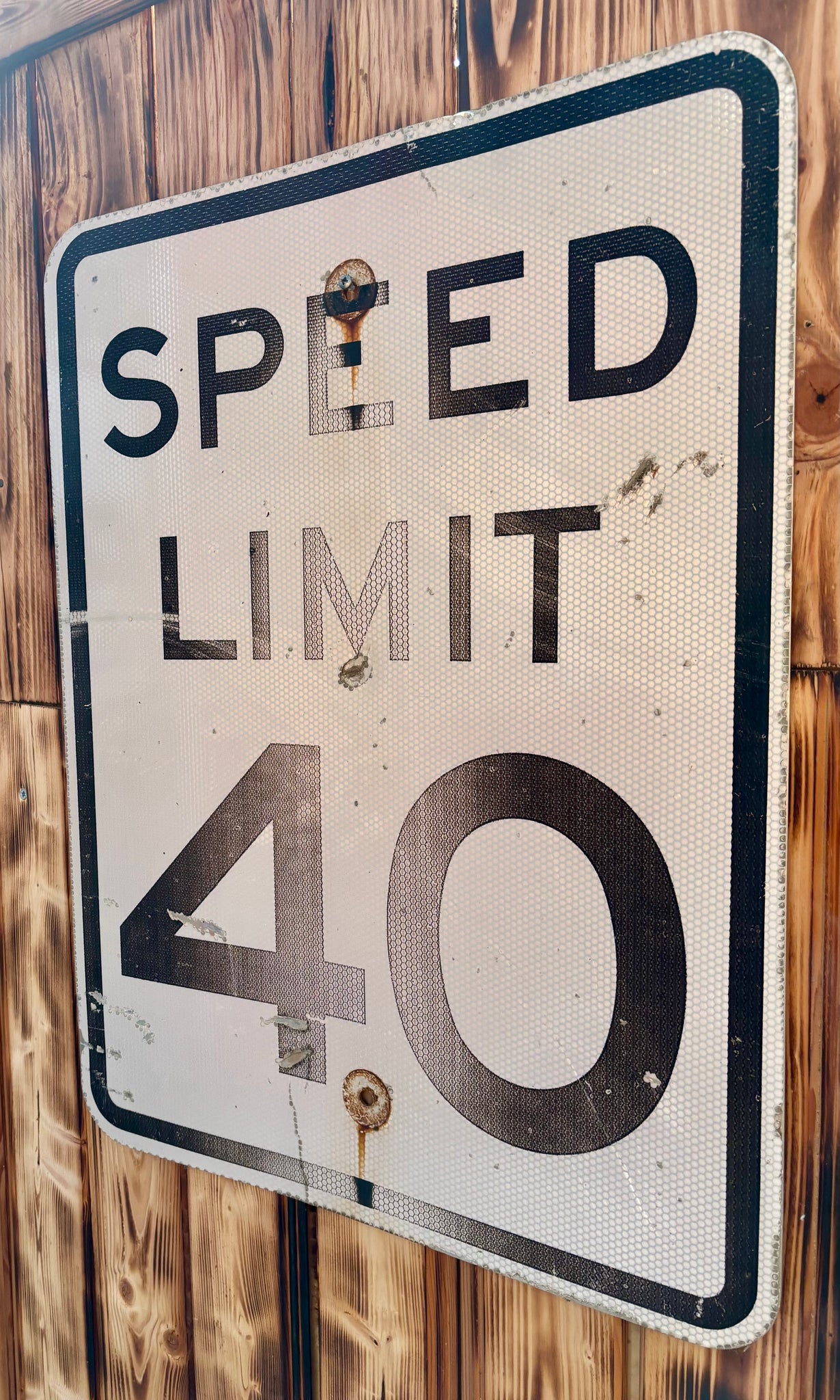Véritable panneau routier américain SPEED LIMIT 40 mesurant 61x46cm.