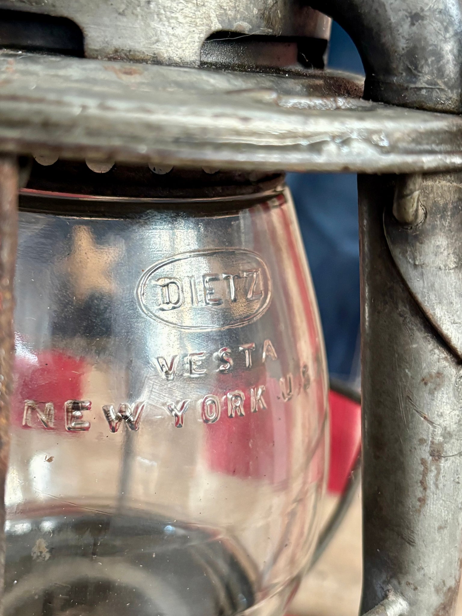 Vous avez sous les yeux une authentique lampe ferroviaire américaine de la célèbre marque américaine Dietz, fabriquée aux États-Unis au début des années 1940.