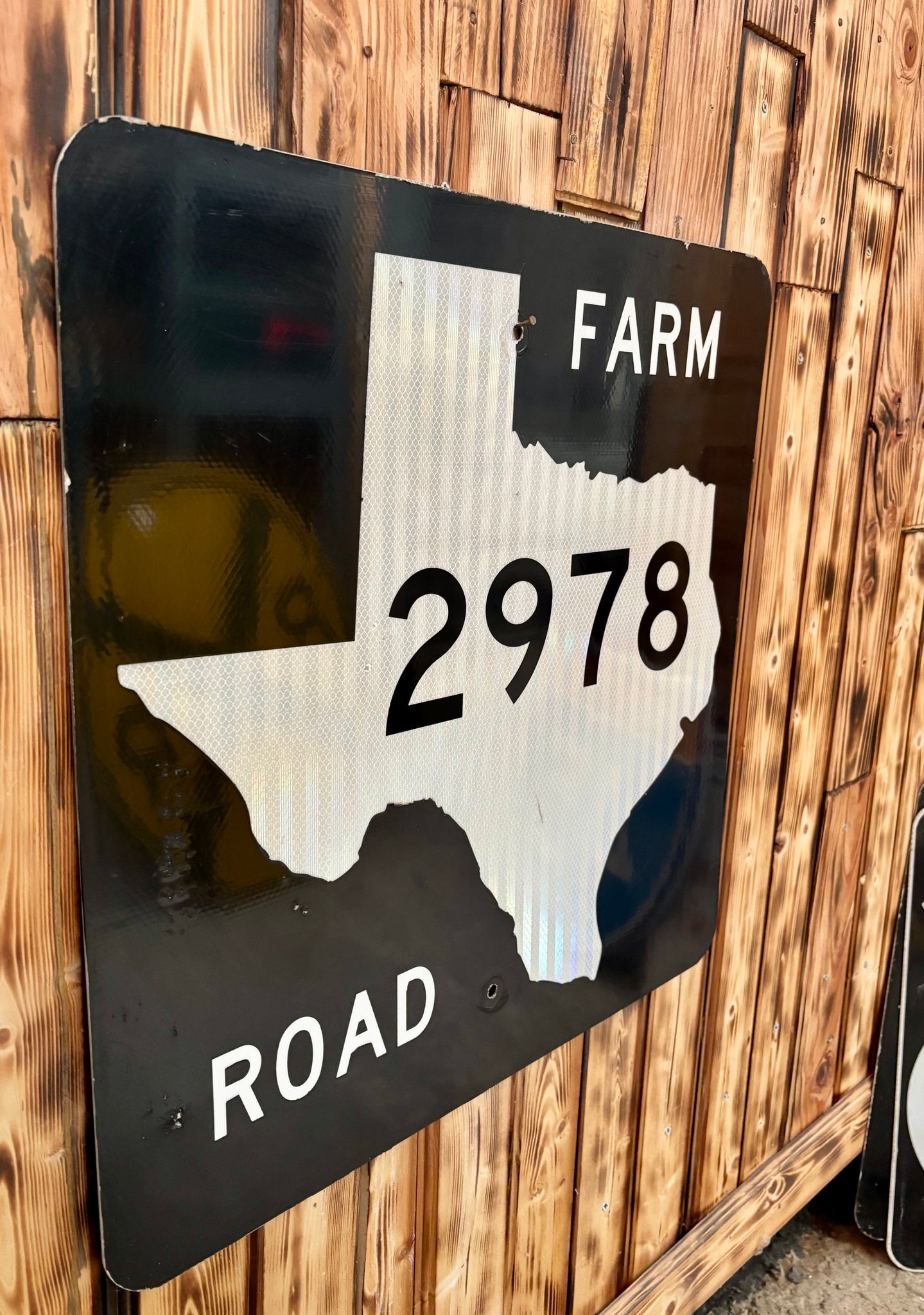 Véritable panneau routier américain TEXAS FARM ROAD 2978 mesurant 61x61cm.