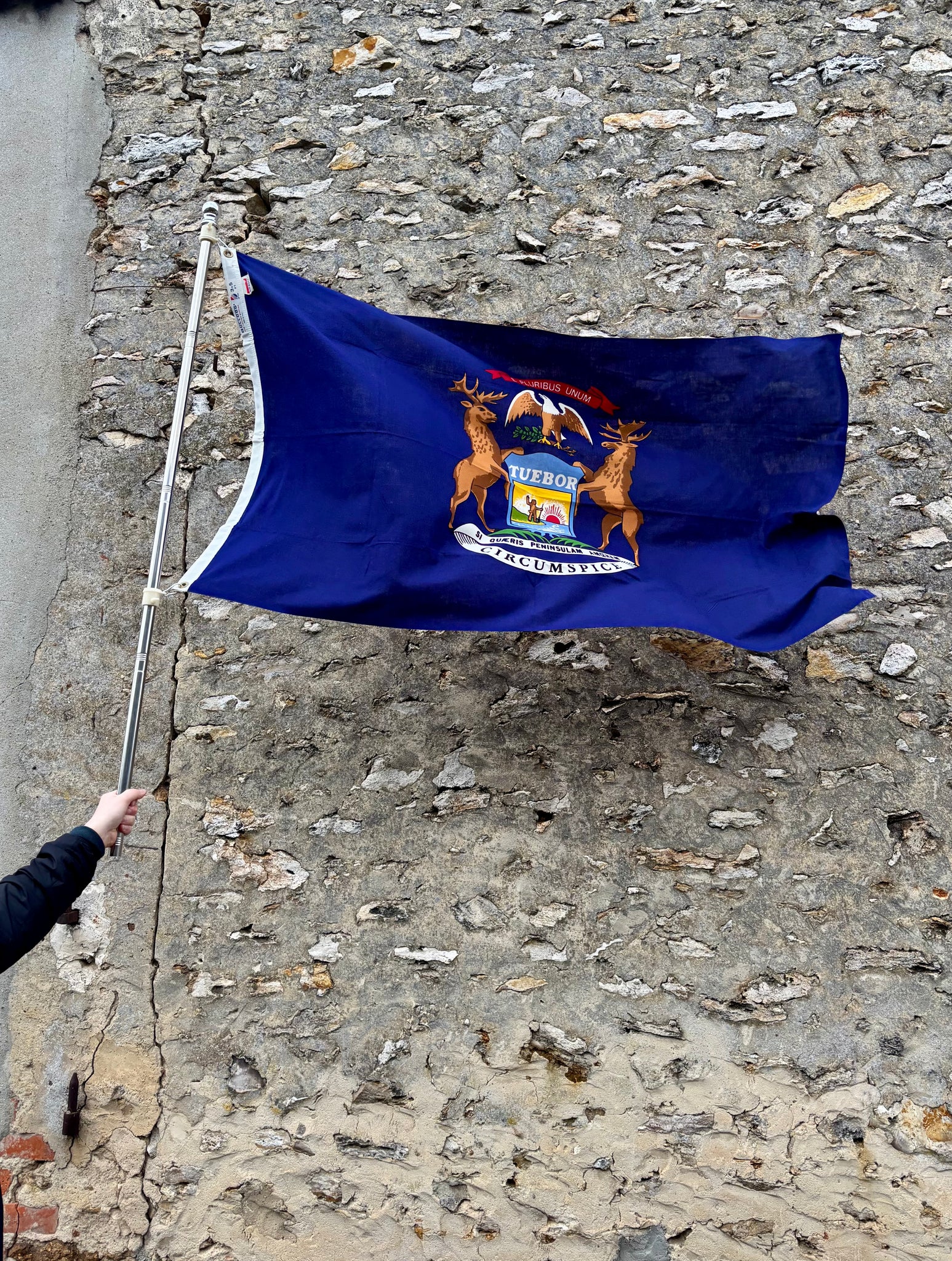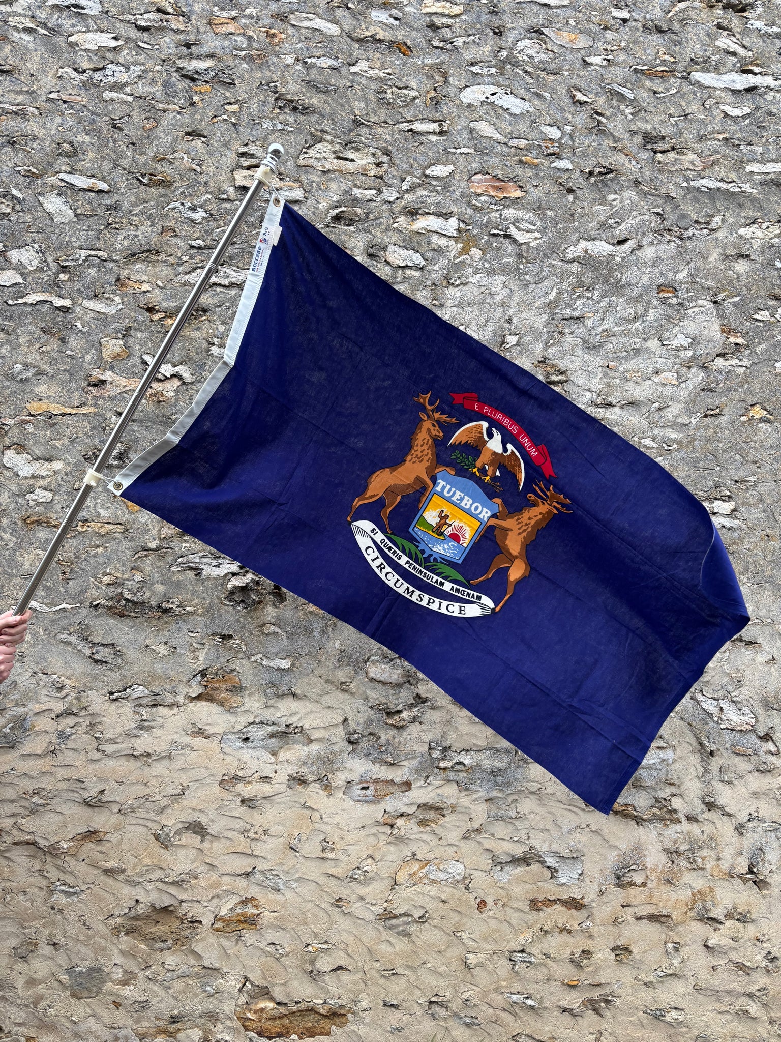 Véritable drapeau de l’État du Michigan - 100% coton - MADE IN USA - Avec son mat en métal !